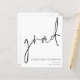 A budget priced smaller (4.5 x 5.6”) on a semi-gloss which is a 110 gsm card stock, similar in thickness to a postcard. PLEASE NOTE there is ONE per sheet. Envelopes are an optional extra and are slightly larger than the card size. Budget Script Graduate Announcement This simple monochrome design to announce the news of your graduate has informal set handwriting style script for the main header, grad, and easy to personalise typography to the bottom right hand side with your details and also your message on the back.