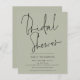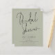 Script Light Sage Green Bridal Shower Invitation. A budget price SMALLER 4.5” x 5.6” alternative. Available in a SEMI-GLOSS 110 lb CARD STOCK which is similar in thickness to a postcard. PLease Note There is ONE per sheet. This modern design in light sage green for your Bridal Shower Invitees has set modern handwriting style script for Bridal Shower at the top and easily personalise with your details beneath. You can also change text and background colours on either side if you wish via the Customize Further option.