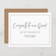 A value for money BUDGET alternative on a smaller size 4.5 x 5.6” semi-gloss 110lbs weight, which is of similar thickness to a postcard (however is not suitable to use as a postcard.). PLEASE NOTE there is ONE invite per sheet. Budget Simple Script Line Border Graduation Annnouncement. A simplistic elegant design, with the main header, Congrats to our Grad, in a set trendy black font. The rest of the text on each side is easily personalised and you can also change the editable text colours and style if you wish via the click to customize further option as well as the gold background on the back.