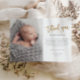 This modern photo thank you note features gold script thank you, personal message and a vertical photo on the front. The back includes a second baby photo that is a full bleed horizontal photo.