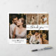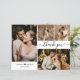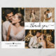 Elegant, Modern 4 Photo Collage Wedding Hand Lettering Thank You affordable low budget thin card. Stylish wedding thank you template featuring four photo on the front and one photo on the back. With the text "Thank you" in a swirly hand lettered typography script font with swash or in black on white background. ***PLEASE NOTE! *** BUDGET PAPER/FLYER IS PAPER THIN. *** UPGRADE THE PAPER FOR A THICKER PAPER. ***