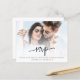 A value for money BUDGET alternative on a smaller size 4.5 x 5.6” semi-gloss 110lbs weight, which is of similar thickness to a postcard (however is not suitable to use as a postcard.). PLEASE NOTE there is ONE invite per sheet. Budget Script Photo QR Code Wedding RSVP. Simply replace the sample photo with your own favourite. A gradient overlay layer is on top of your photo so it fades out as it reaches the centre with the text partially overlaid on top. RSVP is in a stylish set script with swashes and easily personalise the rest of the text. A convenient way for your guests to reply, add your QR code to your wedding website reply page on the back by replacing the QR code on the sample. You can create QR codes for free online. Simply search “QR code creator” and lots of options come up to create for free.