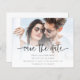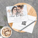 A value for money BUDGET alternative on a smaller size 4.5 x 5.6” semi-gloss 110lbs weight, which is of similar thickness to a postcard (however is not suitable to use as a postcard.). PLEASE NOTE there is ONE invite per sheet. Budget Script Photo QR Code Wedding Save The Date. Simply replace the sample photo with your own favourite. A gradient overlay layer is on top of your photo so it fades out as it reaches the centre with the text partially overlaid on top. Save The Date is in a stylish set script with swashes and easily personalise the rest of the text. If you have a wedding website, add your QR code to your wedding website on the back by replacing the QR code on the sample or delete this code and text if not required via customise further. You can create QR codes for free online. Simply search “QR code creator” and lots of options come up to create for free.