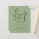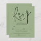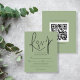 Budget Script QR Code Wedding Sage RSVP. A budget price SMALLER 4.5” x 5.6” alternative. Available in a SEMI-GLOSS 110 lb CARD STOCK which is the default option (thicker for invitations), OR a SATIN FINISH 80 lb THINNER PAPER STOCK (ideal for enclosures). Envelopes are an optional extra and are slightly larger than the card size. Your wedding website QR code is on the back, simply replace the sample code. A stylish set typography in black for the main heading RSVP complementing the rest of the text which you can easily personalise.
