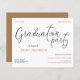 A value for money BUDGET alternative on a smaller size 4.5 x 5.6” semi-gloss 110lbs weight, which is of similar thickness to a postcard (however is not suitable to use as a postcard.). PLEASE NOTE there is ONE invite per sheet. Budget Script Text Graduation Party Invitation. A simple typographical design, with the main header, Graduation Party, in a set trendy black font. The rest of the text in black and gold is easily personalised and you can also change the editable text colours and style if you wish via the click to customize further option as well as the gold background on the back.