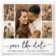 Budget Elegant Modern Black and White Minimalist Typography Script 5 Photo Collage Wedding Save The Date Flyers. This romantic delicate design perfect for modern wedding. Features 5 (five) grid photo collage, a whimsical calligraphy in hand lettered style swash tail font. Easy to personalize it with your wedding details and pictures. Low budget cheap affordable Flyers.