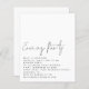 Elegant Script Wedding Evening Party Invite. A budget price SMALLER 4.5” x 5.6” alternative. Available in a SEMI GLOSS 110 lb CARD STOCK which is the default option (recommended for invitations), OR a SATIN FINISH 80 lb THINNER PAPER STOCK (ideal for enclosures). Envelopes are an optional extra and are slightly larger than the card size.The header is in an informal set handwriting style with the details beneath and lots of white space on a square shape for a contemporary style. Easily personalise the text to your own details.