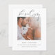 Budget She Said Yes Script Photo Engagement Announcement. A budget price SMALLER 4.5” x 5.6” alternative. Available in a SEMI-GLOSS 110 lb CARD STOCK which is the default option (thicker for invitations), OR a SATIN FINISH 80 lb THINNER PAPER STOCK (ideal for enclosures). A modern design to announce your exciting news, with an ornate set script with a heart swash for She Said Yes above your photo which is in square format and the rest of the text you can easily personalise. Choose a romantic photo of you both and replace the sample photo in the template placeholder with it. You can also change the white background on the front and back, via the Customize Further option if you wish, as well as the text colour to better match your chosen photo.