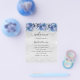 A modern, elegant wedding program, timeline. Faux silver looking background decorated with faux sparkles and blue flowers. Personalize and add your names and wedding details. Black coloured letters. If you have more text it's possible to reduce the line space. You can also add text on the back.