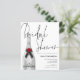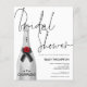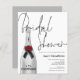 A budget price smaller 4.5" x 5.6" paper alternative. Does not include envelopes but there is an option to add them if you wish. A silver Champagne Bottle with elegant handwritten style black set script Bridal Shower overlapping slightly and a coordinating silver grey background on the other side. Easily personalise the rest of the details. You can also change text and background colours on either side if you wish via the Customize Further option.