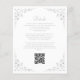 This elegant vintage-inspired formal wedding invitation features the text in silver grey script and serif fonts, framed by a delicate vintage silver vine motif. The reverse side provides space for wedding details, along with a QR code guests can scan to visit your website and RSVP, which saves the cost of printing and mailing separate RSVP cards.