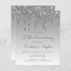 This trendy 25th wedding anniversary party invitation features a sparkly silver faux glitter drip border and silver ombre background. The words "25th Anniversary" and the first names of the couple appear in casual silver grey handwriting script, with the rest of the customizable text in sans serif font. The same silver glitter drip design appears on the reverse side.