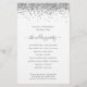 Budget Silver Glitter Script Wedding Program. A LARGER size 5.5” x 8.5” at a budget price, on an elegant 110 lb LINEN stock – for a luxury feel at great value, this is perfect for invitations, menus, programs etc. This budget size 5.5 x 8.5” alternative is also available in other paper choices. The SEMI-GLOSS 110 lb card stock is about the same thickness as a postcard, so also works well for invitations. The FELT 100 lbs paper is buff coloured, NOT white, so adds a rustic touch. The MATTE 80lbs paper stock is bright white, for crisp printing, great for your menus and programs, whilst the SATIN 80lbs paper is thin and light, ideal for enclosures. Glam style with faux glitter bordeing the top on each side. Easily personalise the text to your own requirements.