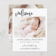 Budget Simple Baby Announcement Elegant Photo Collage that have a photo on the front and 4 Picture on the back. The cards contain a modern hand lettered cursive script typography that are elegant, simple and modern to use for a newborn baby boy or baby girl sent out by the mother and father of the infant child to family and friends.
