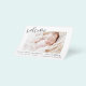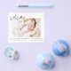 Budget Simple Baby Announcement Elegant Photo Collage that have a photo on the front and 4 Picture on the back. The cards contain a modern hand lettered cursive script typography that are elegant, simple and modern to use for a newborn baby boy or baby girl sent out by the mother and father of the infant child to family and friends.