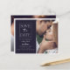 This is a classic and simple wedding save the date printed on a budget friendly paper shee, using an elegant and modern font in along with a single minimalistic photo. The reverse side includes a message and another photo that you can personalize.