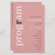 Simple Dusty Rose Text Wedding Program. A budget price size 5.5” x 8.5”, on an elegant 110 lb LINEN stock – for a luxury feel at great value, this is perfect for menus, as well as invitations and programs etc. This budget size alternative is also available in other paper choices. The SEMI-GLOSS 110 lb card stock is about the same thickness as a postcard, so also works well for invitations. The FELT 100 lbs paper is buff coloured, NOT white, so adds a rustic touch. The MATTE 80lbs paper stock is bright white, for crisp printing, great for your menus and programs, whilst the SATIN 80lbs paper is thin and light A modern typographical design with Program in large typography in white with the ”r” in black, rotated and to the left hand side on a background of dusty rose pink.
