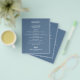 An affordable value paper of 80 lb. weight, these small slate blue dinner menu cards feature your food choices in chic white lettering. Perfect for a modern wedding reception, wedding rehearsal dinner, anniversary party, or any special event with a sit-down dinner. *Measures 4.5" x 5.6" (or choose from 2 other sizes.) The Live Design Service can help you with your design layout, size or adjust the colour if needed.