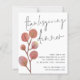 Budget Simple Leaves Thanksgiving Dinner Invitation. A budget price SMALLER 4.5” x 5.6” alternative. Available in a SEMI GLOSS 110 lb CARD STOCK which is the default option (recommended for invitations), OR a SATIN FINISH 80 lb THINNER PAPER STOCK (ideal for enclosures). Envelopes are optional and are slightly larger than the card size. Artsy watercolor leaves in autumnal coral pink colours are to the left, with trendy handwriting style set typography for Thanksgiving Dinner. Easily personalise the rest of the text with the details of your event. A coordinating colour is on the back.