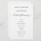 Taille 5,5" x 8,5" à un prix abordable, Ce design typographique simple entièrement personnalisable a en-tête Ordre de cérémonie est dans un script noir élégant. Personnalisez facilement le texte à vos propres détails des deux côtés. Vous pouvez également modifier les couleurs et les polices de texte si vous le souhaitez via l'option de personnalisation plus poussée, ainsi que les couleurs arrière - plans.