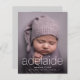 A full-bleed photo birth announcement with large moveable name element in a sleek modern font with birth details below. The back of the card allows for 2 additional newborn photos and parents personal message or additional birth information. All of the elements on this card are customizable so it's easy to create a one of a kind design by swapping out the fonts and colours of text and background colour to meet your specific needs. The back of the card is an ideal place to add siblings photos as well to include them on the exciting announcement of their new brother or sister. This would make a lovely adoption or pregnancy announcement as well.