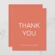 Budget Moderne et Simple Portrait en Terracotta Carte de remerciements. La couleur et le type de police peuvent être modifiés via le menu d'édition. Vous pouvez également modifier les couleurs du texte et de l'arrière - plan de chaque côté si vous le souhaitez. Un rapport qualité/prix inférieur 4,5 x 5,6 pouces alternative par défaut à l'option semi-brillant qui est recommandé pour les invitations et est une épaisseur similaire à une carte postale. L'option satin est un stock papier beaucoup plus mince.