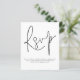 A value for money BUDGET alternative on a smaller size 4.5 x 5.6” semi-gloss 110lbs weight, which is of similar thickness to a postcard (however is not suitable to use as a postcard.). PLEASE NOTE there is ONE invite per sheet . Simple QR Code Script Wedding RSVP.  A convenient option enclosure to ask your guests to scan your QR code to your wedding website to RSVP.   A stylish set typography in black for the main heading RSVP complementing the rest of the text which you can easily personalise, with QR code on the back. Simply replace with your own.