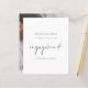 Budget Simple Script Photo Engagement Announcement> A budget price SMALLER 4.5” x 5.6” alternative. Available in a SEMI-GLOSS 110 lb CARD STOCK which is the default option (thicker for invitations), OR a SATIN FINISH 80 lb THINNER PAPER STOCK (ideal for enclosures). A simple and elegant black and white design to announce your happy news. Engagement is in a modern set script is in the centre.The rest of the text you can easily personalise and replace the sample photo on the back with your own. Text and background colours can be changed if you wish to better suit your wedding theme via the customise further option.