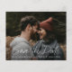 This Modern script Photo Wedding Save the Date features an elegant, minimal design with hand lettered save the date white typography on a full bleed photo. Customizable details and photo on the front. The back offers a personal message. Click the Edit button to personalize this design.