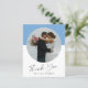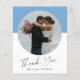 Minimalist trendy modern white and blue stylish calligraphy script budget affordable wedding thank you card personalized with your photo, custom text, and signature on both sides. ++++++++++ NOTE that the colours can be changed to match your wedding colour scheme. If comfortable doing it, you can change them after selecting CUSTOMIZE IT option. ++++++++++ PLEASE READ THIS BEFORE PURCHASING! This is a budget affordable wedding card printed on a paper sheet (each sheet has one card). ++++ For the best rapport price-quality, our advice is to choose the Semi-Gloss paper type (it is thick enough to be used for stationery) ++++ If you need envelopes, choose the ENVELOPE OPTION. +++ Double-check all the information and spelling of your text because you will receive exactly what you see - no one else will check anything before printing. ++++ This card is designed for size 4.5" x 5.6". In the case you choose another size of the card and text goes outside page, everything needs to be fixed before adding the product to cart. Please ask Live Design Service for help.