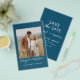 Budget Personalize this Dark Teal and White One Photo Simple and Elegant Double Sided Save The Date Invitation with your message and details. This chic invitation includes modern and elegant stylish handwritten script typography for the special Wedding to Be celebration.