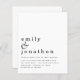 A value for money BUDGET alternative on a smaller size 4.5 x 5.6” semi-gloss 110lbs weight, which is of similar thickness to a postcard (however is not suitable to use as a postcard.). PLEASE NOTE there is ONE invite per sheet. Simple Text Black White Wedding. Simple and. Informal, your first names are large in stylish lowercase with the details at the beneath. Easily personalise the text.