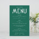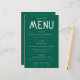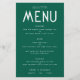 Budget Simple Text Emerald Wedding Menu. A budget price size 5.5” x 8.5”, Contemporary style, easily personalize the text to your own details which includes alternatives for your vegan or vegetarian options. You can change if you wish to any colours of your choice to match your wedding theme.