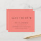 Simple Typography Coral Rose Save The Date. A budget price SMALLER 4.5” x 5.6” alternative. Available in a SEMI-GLOSS 110 lb CARD STOCK which is the default option (thicker for invitations), OR a SATIN FINISH 80 lb THINNER PAPER STOCK (ideal for enclosures). Minimalist elegance with Save The Date in a modern set script.The rest of the text you can easily personalise.Shown here in black on Dusty rose pink however the text and background colours can be changed if you wish via the customise further option.