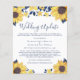 An inexpensive, budget-friendly bright and cheerful smaller wedding update announcement featuring yellow and navy blue watercolors of sunflowers, florals and foliage, "Wedding Update" in stylish navy blue script and the details in simple navy blue typography. You can easily personalize "Wedding Update" to something similar in length (e.g., "Smaller Wedding," "Reduced Wedding," etc.), your reduced wedding message in more detail and add any virtual wedding events and future celebrations.