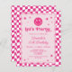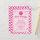Budget cute happy smile hot pink chequered girl birthday invitation.