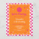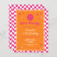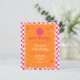 Budget happy smile pink and orange chequered girl birthday invitation.