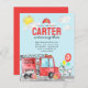 Modern Cute Sound the Alarm Fire Truck Dalmatian Dog Balloon Firefighter Birthday Invitation