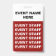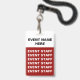 Use these budget special event badges created in red and white with lanyards included. With the design printed on both sides your information will be displayed even if the badges turn around to the other side. Customize these online for trade shows, concerts, seminars, or special events.