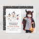Get ready for an unforgettable Halloween party! On the left-hand side, this dynamic & budget invitation features a hand-drawn scene of a dancing skeleton, two mischievous ghosts, and a whimsical bat, all surrounded by a spooky ensemble of Halloween elements – crawling critters, eerie bones, a skull, and decorative black and orange dots. Beneath this enchanting scene, the thrill continues with "spooktacular celebration" presented in charming serif typography, followed by the birthday boy's name and age showcased in retro script. The essentials – date, venue, and time – are neatly divided into three sections by sleek vertical line dividers. On the right-hand side of this invite, there is a custom photo of the birthday boy. A no-photo version is available in our store. The back of the card shows a pattern of the Halloween characters set against a subtle grey backdrop. While we've used birthday text in the template, feel free to customize it for a costume party or any Halloween-themed extravaganza. Personalize this invitation effortlessly with Zazzle's design tool. As part of the budget selection on Zazzle, this sheet isn't a standard invite size or paper quality. If you want this design on an invitation card you can find it in our store or use the Zazzle Make Machine to transfer it onto the product of your choice. If you have any enquiries or special requests, don't hesitate to reach out to us. Please remember that existing orders cannot be modified, so be sure to connect with us first. Browse our collection for more Halloween party invitations!