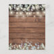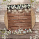 A rustic budget wedding invitation featuring pretty string lights and sage and lilac leaves that tumble over a rustic wood panels background and your wedding details set in classic elegant text. Designed by Thisisnotme©