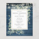 Featuring delicate watercolor greenery leaves and pretty string lights on a blue rustic wood background, this chic budget bridal shower invitation can be personalized with your special bridal shower information. Designed by Thisisnotme©