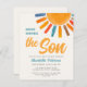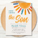 Invite family and friends to your sun-themed baby shower with this cute sunshine boys' baby shower budget invitation. It features the text "Here Comes The Son" in stylish typography with a brightly coloured watercolor sun on a soft cream background. Easily customizable. Original Watercolor © Michele Davies.