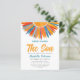 Invite family and friends to your sun-themed baby shower with this cute sunshine boys' baby shower invitation. It features the text "Here Comes The Son" in stylish typography with a brightly coloured watercolor sun. Easily customizable. Original Watercolor © Michele Davies.
