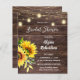 Save money on invitations with this smaller invitation that has an option for envelopes. Get your guests ready for the amazing wedding with this Sunflower, Wood, & String Lights bridal shower invitation.