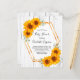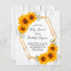A rustic white wooden background. A faux gold geometric frame. With the text: Baby Shower and the name of the mother on front written with a modern hand lettered style script. Black letters. Gender neutral.