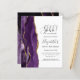 The left-hand edge of this elegant surprise birthday party invitation features a purple watercolor agate border trimmed with faux gold glitter. The customizable text combines handwriting, copperplate and italic fonts in charcoal grey on a white background. The reverse side features a matching purple and gold agate design.