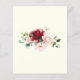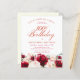 Red roses and blush pink peonies are nestled in dark green leaves on this beautiful and unique birthday invitation.