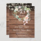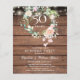 Featuring a delicate watercolor floral greenery garland and pretty string lights on a wood panels background, this chic rustic surprise party 50th wedding anniversary budget invitation can be personalized with your special golden anniversary information. The reverse features a matching floral garland framing the anniversary dates in elegant white text on a wood panels background. Designed by Thisisnotme©