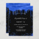 A girly and trendy Sweet 16, 16th birthday party invitation. On front: A chic black background. Decorated with royal blue faux glitter drips, paint dripping look. Personalize and add a name and party details. The name is written with a hand lettered style script.